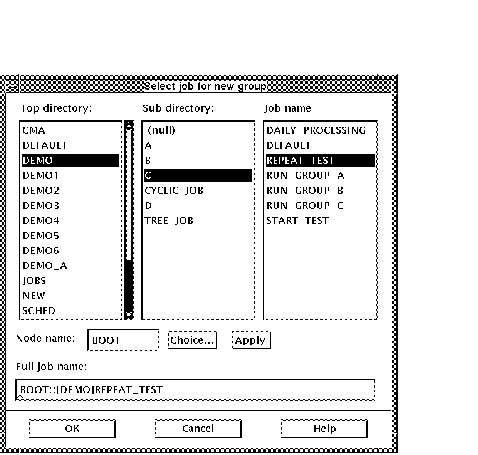 Select the job using either the mouse or the keyboard or fill in the complete name in the box. The new job group will appear which will include the chosen job and all attached dependencies.