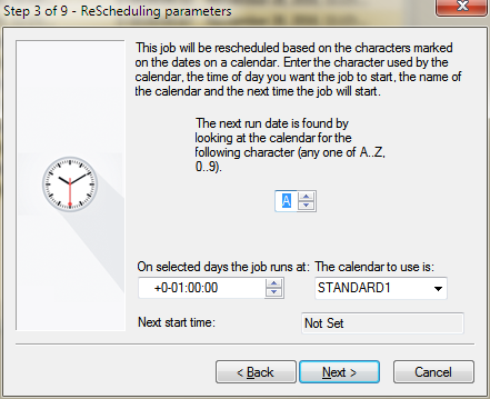 This rescheduling method involves a calendar being associated with a job. Any alphanumeric character can be assigned A calendar can either be created using the Calendar Wizard or using the EnterpriseSCHEDULE Explorer .